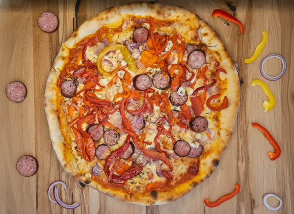 protlak, zapečené vejce, beraní rohy, pancetta, mozzarella, oregano
